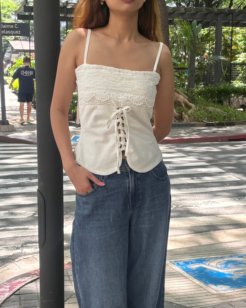 Effortlessly chic and irresistibly feminine — our Portia Lace-Up Top is your new go-to for sunny days.